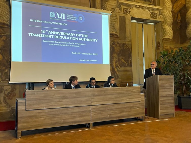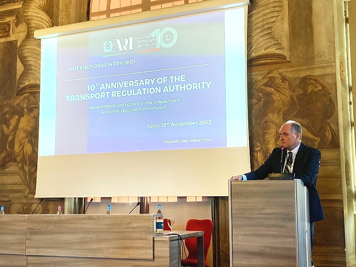 Il secondo evento dedicato a celebrare il decennale dell’Autorità di regolazione dei trasporti è stato il workshop internazionale: “2013-2023 / 10 anni dell’Autorità di regolazione dei trasporti – Tendenze recenti e prospettive della regolazione economica indipendente dei trasporti” che si è svolto a Torino il 15 novembre 2023, presso la prestigiosa sede del Politecnico di Torino al Castello del Valentino.