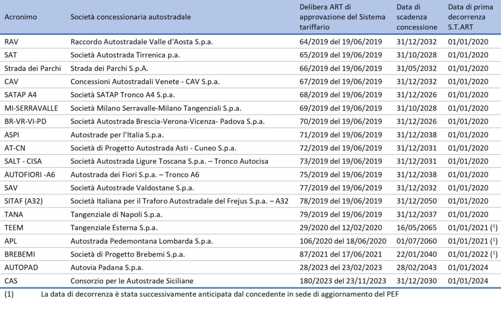 La concessione relativa a Strada dei Parchi SpA è inclusa nell’ambito di applicazione della delibera n. 75/2025.