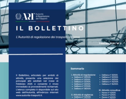 Il Bollettino ART n. 2/2025 con le principali decisioni assunte dall’Autorità di regolazione dei trasporti nel mese di febbraio è online.