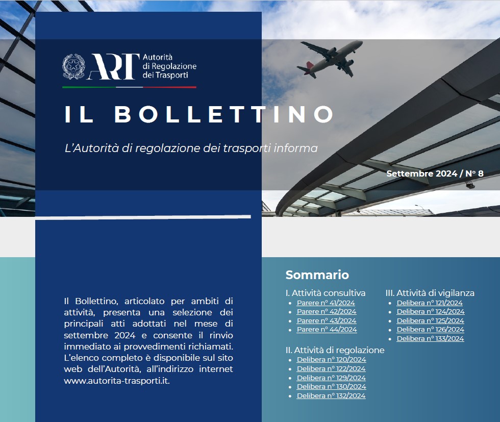 Il Bollettino ART n. 8/2024 con le decisioni assunte dall’Autorità di regolazione dei trasporti nel mese di settembre è online.
