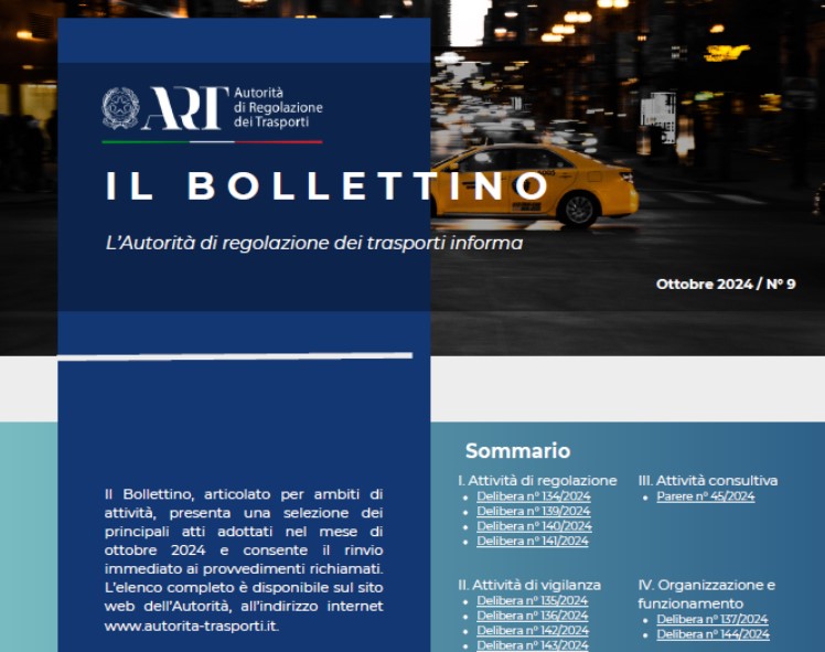 Il Bollettino ART n. 9/2024 con le decisioni assunte dall’Autorità di regolazione dei trasporti nel mese di settembre è online.